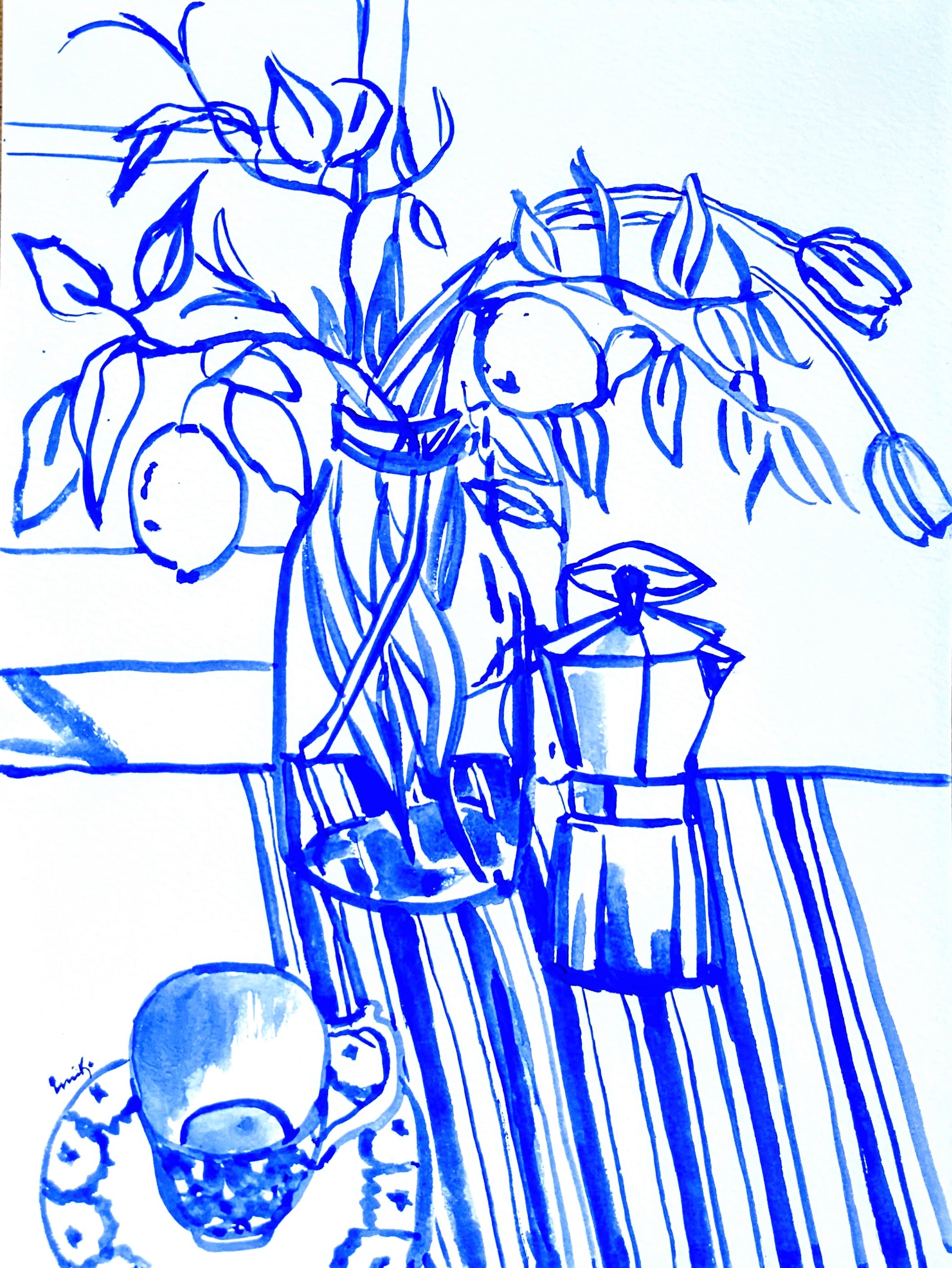 This original work is a gouache painting on 9” x 12” 300g, cold press watercolor paper.